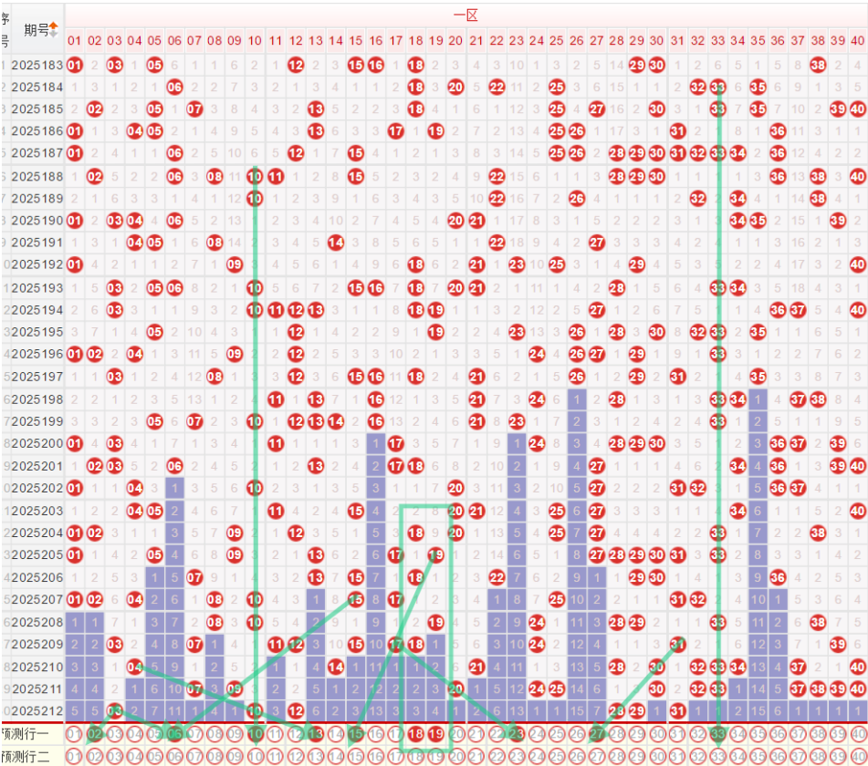 如图所示:在本期小数区的选号中,注意在上期的走势中一区间开出了3枚中奖号码,落号数量继续保持着低位走势,参考我们上方对数值走势的分析,本期要注意一区间的落号数量出现幅度较大的上调走势,重点考虑10 12的位置开出重号走势,形态上建议考虑一重一边的走势,如10 13的双码走势,尾部位置继续关注18 19的二连走势,前段的位置在上期开出03的胆码走势下方本期注意延续走势的02继续开出,以及冷号走势的同路第四期走势06,同时要注意02 06 10的等距三走势,二区间在上期的开奖结果中落号数量出现的大幅度的下降走势,仅开出了三枚中奖号码,本期要注意二区间的落号数量继续保持相对较低的落号数量,重点考虑近期的热码33号与48的交替走势,本期建议可以考虑二选一,或者是同时考虑,前段位置注意冷号23号的回补走势,以及上期开出28 29之后,本期继续向前推移的走势注意区间同尾走势,尾部位置注意空位走势。