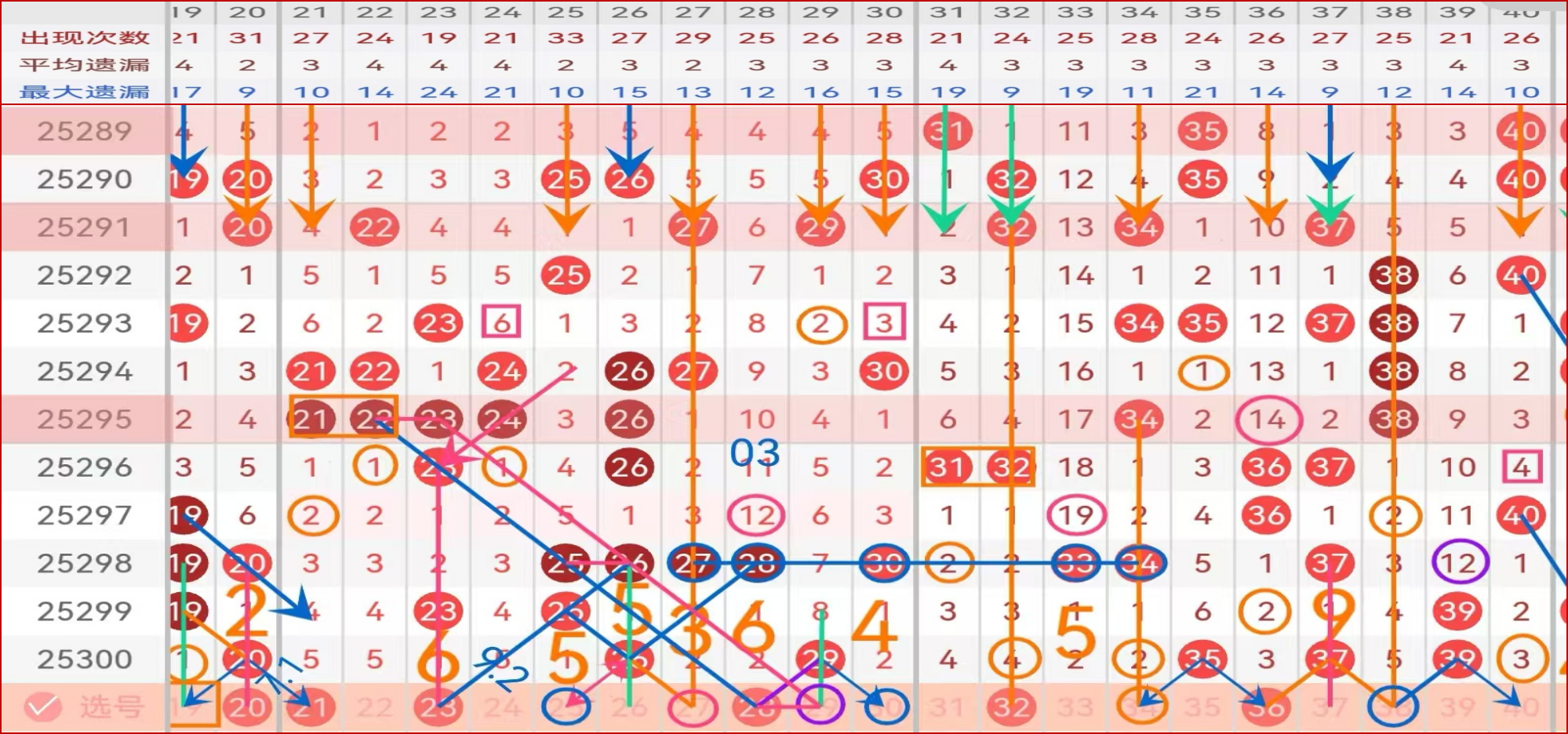二区间上期开出了5个号码球,均值开出; 点位形态码21,三斜连,高数据,第三次走遗漏5,可考虑主防;孤码23隔期下面,第七次走遗漏1点位可考虑做防;26的分边25 27,二择一27可选择性做防;大遗漏空二的28,第七次走遗漏2,是不错的遗漏回补码,孤码分边,这里的27 28二择一主做,推荐28可主胆;第五次走遗漏4的32,遗漏对称,31 32二择一,选择32主防,可带上33做连号复式码防守;孤码35的分边34 36本期均属不错的号码球,高数据、遗漏回补,做复式可双码同拿,二择一主做推荐36;38属于形态规避号码球,可小防;40高数据,怕其走遗漏对称,可做防;