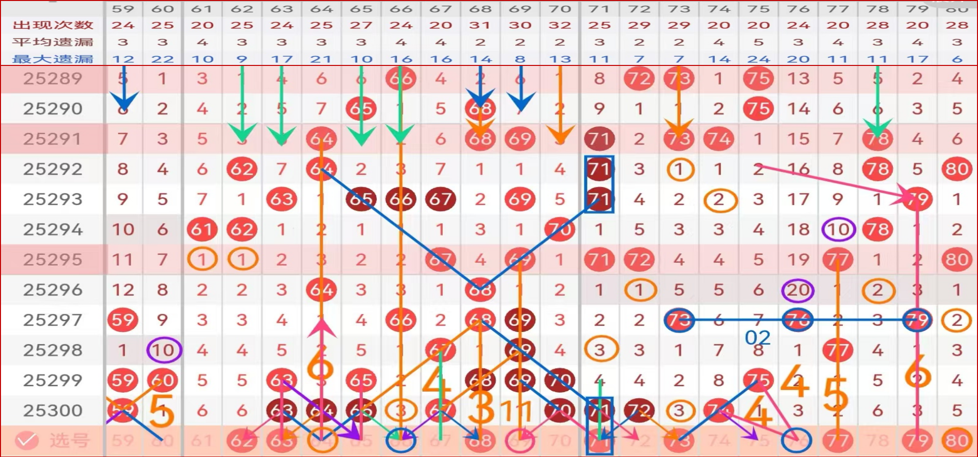 四区间给到主做号码球:62 63 68 71 73 77 79 防守号码球:64 66 69 76 80;
