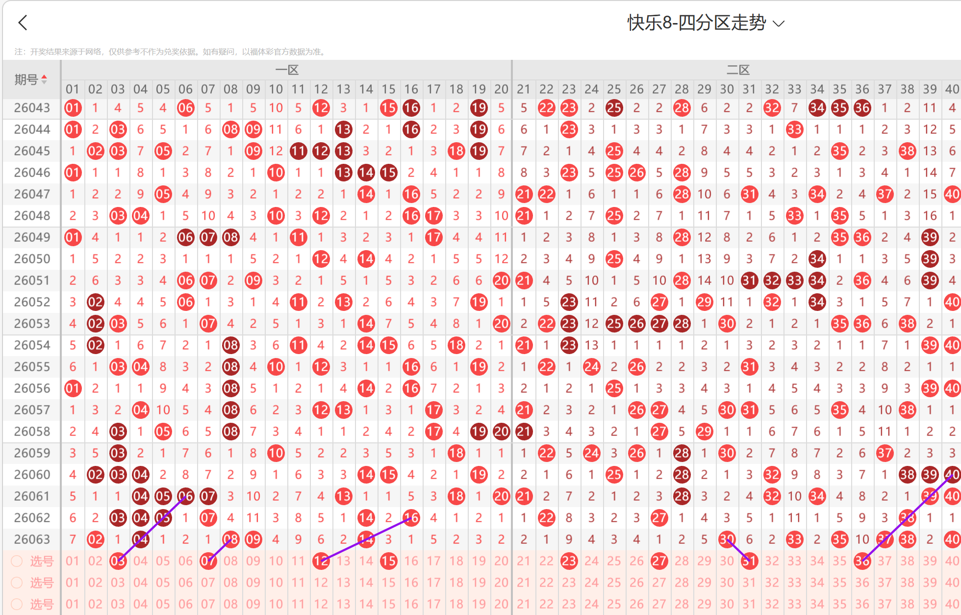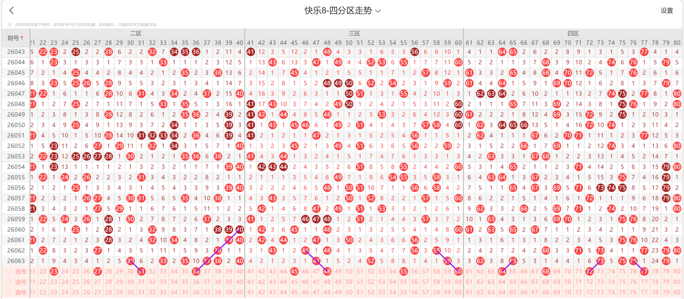 ### 第2026064期福彩快乐8 四区间走势分析