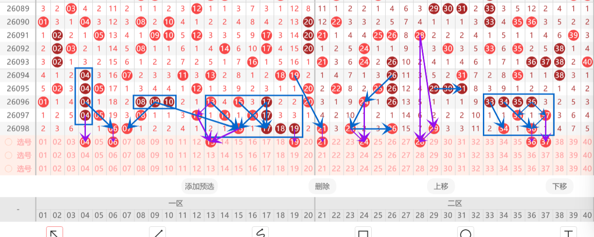 - 冷号:长期未开出的号码,大概率迎来回补,适合提前埋伏选号。