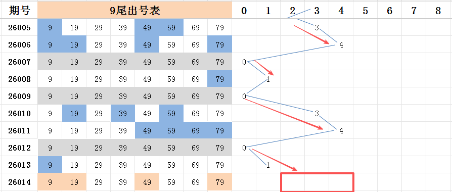 本期看好号码开出的范围是两码走势至四码走势之间。上期开出的尾号,前半部分的尾号占优,其中二尾开出四码走势,一尾和四尾均开出三码走势。可惜老杜看好的后半部分的尾号。本期依旧看好的是后半部分的尾号,今年至今,已有半个月了,尾号的侧重点应该轮换了吧!