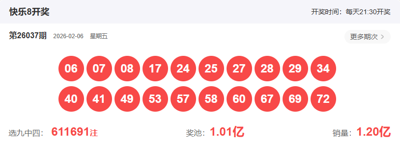首先我们看下上期开奖结果,快乐8第26037期开奖结果:06 07 08 17 24 25 27 28 29 34 40 41 49 53 57 58 60 67 69 72,和值为:771,大小比:9:11,四区4:7:6:3,出了三组两连号,分别是:24+25,40+41,57+58, 开出两组三连号,分别是:06+07+08, 27+28+29,直连重号出了3个,分别是:27,49,67,均为两连重号,我们把01-40分为前区,41-80分为后区, 则上期小号居多,值得注意的是,间隔11期未开出的冷号40和间隔18期未开出的冷号41开出两连号,其余均为热号和温热号。
