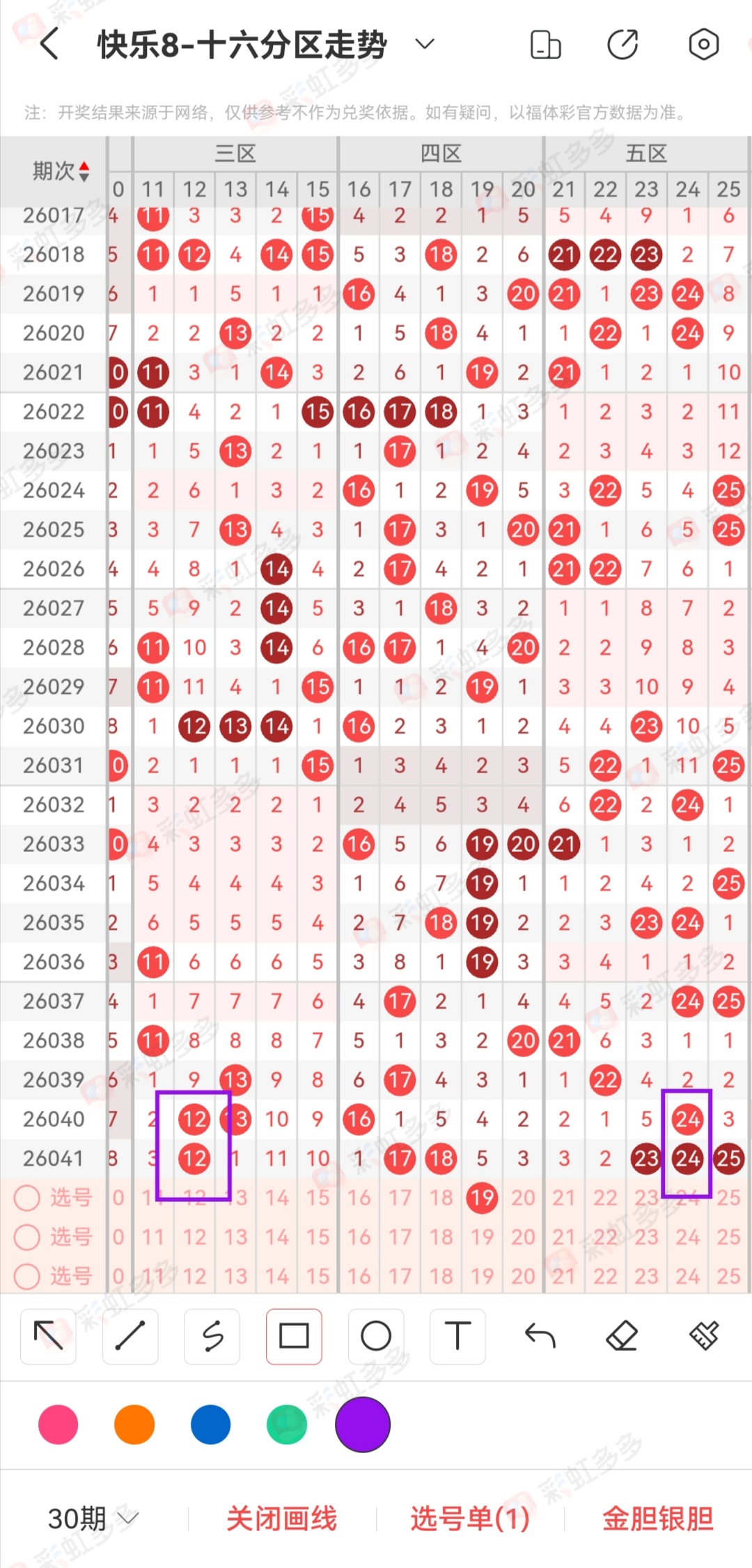 今天分析一下数据推荐,历史考虑点位。最近推荐的一些数据延伸,比方说36 33 29 24 18 11。这里的7码顺位说了很长时间,凡是存在一些敏感数据的时候,多少可以利用一下。避坑号码没有存在稳定的周期,但是我们可以通过其中的一个两个可以发现,举个例子来说,昨天的出现的24,或者说前天出现的24,多数大概率存在背靠背走重。12 32昨天出现1个号码重号。然后我们今天不是也有2尾,且有且仅有一个,这里就可以大方向避坑。然后昨天的数据不是出现了其中的一个,例如18开出来。背靠背存在1尾,那么今天大概率也是存在一个号码走重,比方说31 41这里的逻辑。多多少少存在一个考虑。我不知道大家能不能看懂,就是简单的说,这里的6码数据,只要当期存在,那么第二天就可以考虑背靠背同出尾号走重,如果有且仅有一个的时候就大方向避坑。
