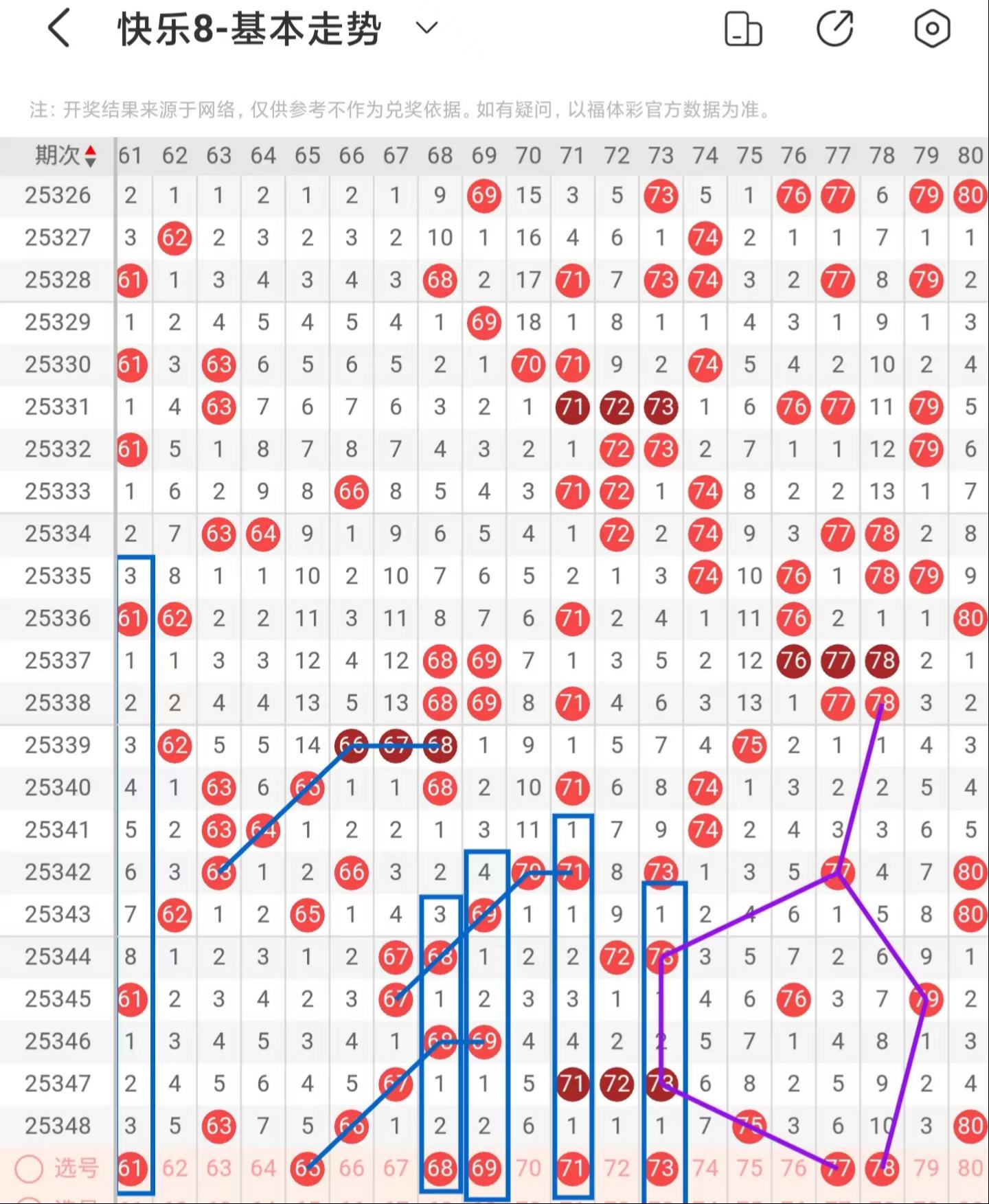 四区间上期稳定落号,一共开出四个号码球,本期考虑等同数量的号码球,注意区间的冷热态反复回调,注意隔期对称回补的61号码球,注意斜连走势回补的65号码球,同时要注意防守66号码球的重落回补,注意期数和值加减法的69号码球,注意隔期对称回补的71、73号码球,注意斜连走势回补的77号码球,注意百期相似形态的78号码球,因此四区间关注65-66-69-73-77。注意本区间的选二复式66-69-73。