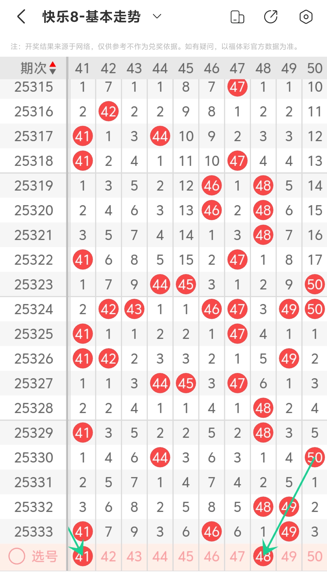 上期第五区间开出41 46 49,41为重码带斜连走势,48为斜连走势,本期推荐41 48