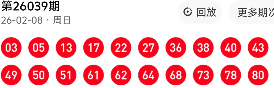 福彩快乐8第040期推荐 上期中出05 36 49 50 51 61 64