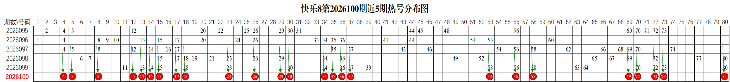 快乐8第2026100期多条件统计分析组号(上期对1组选8中6)