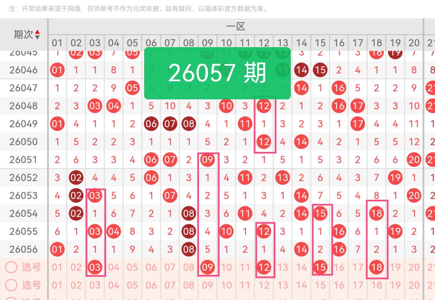 上期第一区间开奖4个号码,本期可能会增加开出。03 处在区间前端位置,作为小号码起到稳定前区的作用,让整体布局更完整。 09 衔接前端与中段,奇偶搭配合理,保持区间内号码分布均匀,不出现明显断层。 12 位于一区中间位置,承上启下,让前后号码过渡更自然,结构更协调。 15 靠近一区后半段,平衡区间密度,避免前轻后重,提升区间整体覆盖度。 18 作为一区收尾号码,与二区形成顺畅衔接,让前后区连接更紧密,整体走势更连贯。