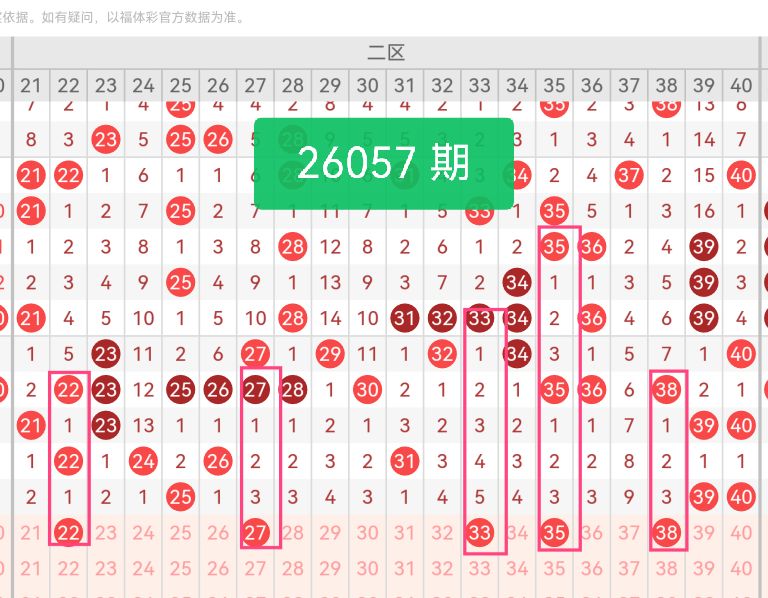 上期第二区间开奖3个号码,本期可能会增加开出。22 紧贴一区后端,起到过渡衔接作用,让一、二区之间没有明显空白,结构更紧凑。 27 处在二区前中段,均衡区间密度,搭配奇偶比例,让号码分布更有层次。 33 位于二区中段核心位置,支撑整个中区结构,使整体布局重心更稳。 35 与33形成近距离搭配,强化中区活跃度,同时不显得过度集中。 38 靠近二区尾部,衔接三区,让中后段过渡更自然,提升整体连贯性。
