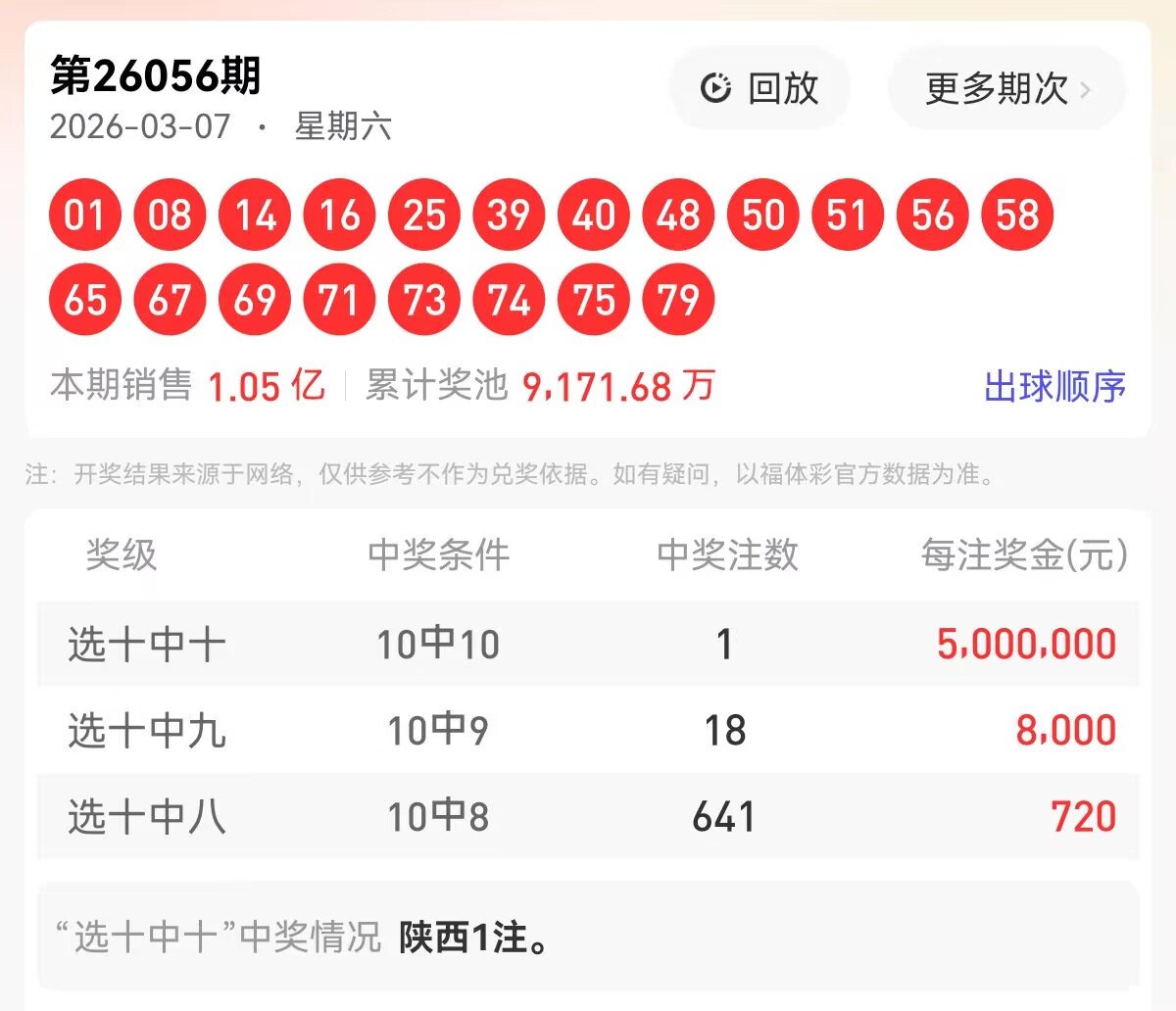 上期福彩快乐8第 2026056期开奖号码为【01 08 14 16 25 39 40 48 50 51 56 58 65 67 69 71 73 74 75 79】,其中大小比13:7,奇偶比为11:9,和值为979,跨度78,四区间比为4:3:5:8。下面是对本期对于每个号码的详细分析。