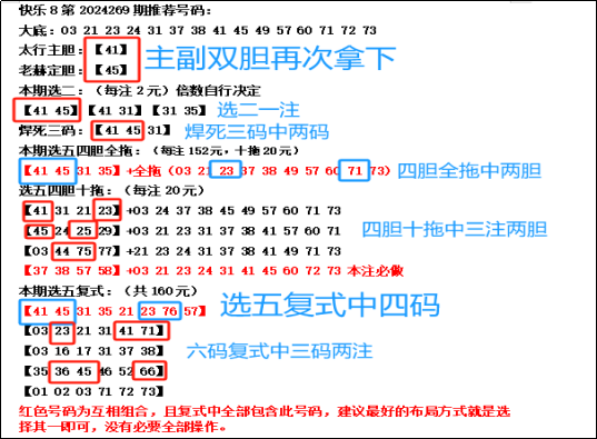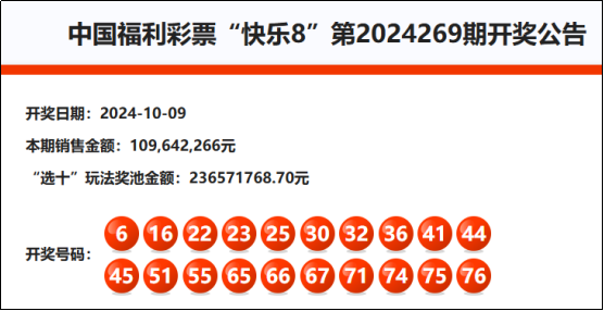 首先我们先来回顾快乐8第2024269期开奖号码: