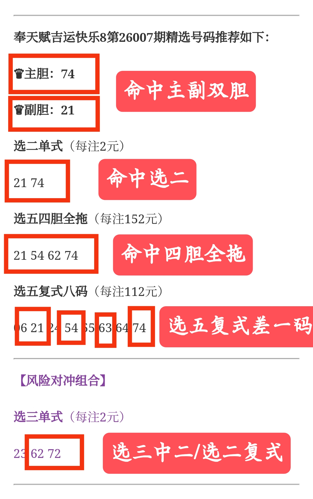 首先,我们来回顾一下福彩快乐8第26007期开奖号码:
