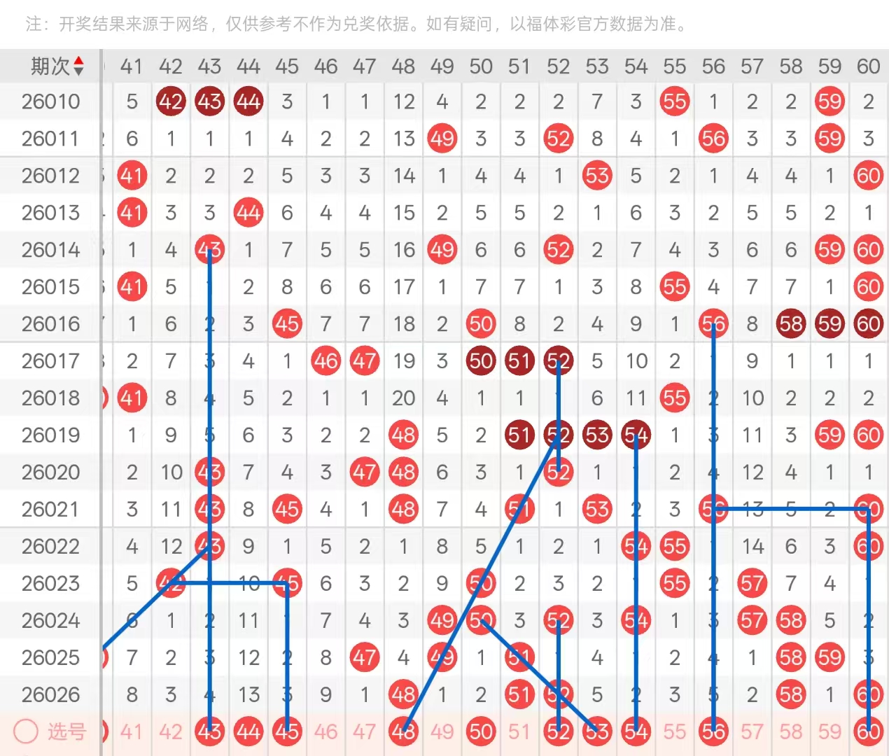 三区:三区间上期开出五码,4字头仅仅开出尾部位置四期遗漏消漏的48,头部位置以及中部位置均处于放空状态,一码没有开出。5字头则开出头部位置三期遗漏做重的51,与空一回补的52以对子形态开出,中部位置处于放空状态,尾部位置开出了三重的58,以及四斜连下落的60两码。本期4字头头部位置可重点关注414243三码的做三保一即可,其次44的十三期遗漏在本期与0字头头部位置01两码可做二选一开出,中部位置45,46在本期可防守一码开出,尾部位置上面4849两码本期可防守一码下落,5字头头部位置51-52的对子关注分边号码50,53的下落,53与中部位置56两码位五期遗漏可做二选一,尾部位置5860同开,可考虑一码的做重,优先选择60的三期遗漏做重,防守59的梅花开出。