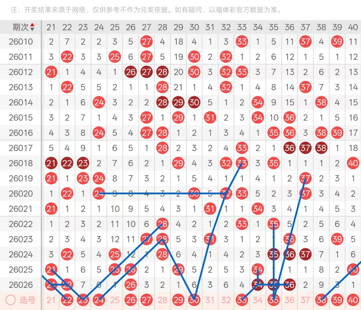二区:二区间上期开出了六码,2字的头部位置开出了三期遗漏座重的21,以及空一回补的22以对子形态开出,以及中部位置十二期遗漏下落的26座重,尾部位置处于放空状态,3字头则开出中部位置34,35,36三码三连号,前后部分处于放空状态。本期2字头头部位置可重点关注2122对子的一码做重,其次分边号码2023二选一。24的六期遗漏与尾部位置30两码可做二选一开出,以及3字头头部位置32也需要关注,三码可关注一码下落。中部位置26上期以双重开出,本期关注分边号码25-27的下落,其次尾部位置空一回补的29需要防守,3字头头部位置可重点防守34-35-36连号的分边号码33,37两码下落可优先选择33的开出,其次重码可重点关注35的下落。尾部位置383940,做三保一即可,其次38的九期遗漏在本期与46,80两码可做三保一。