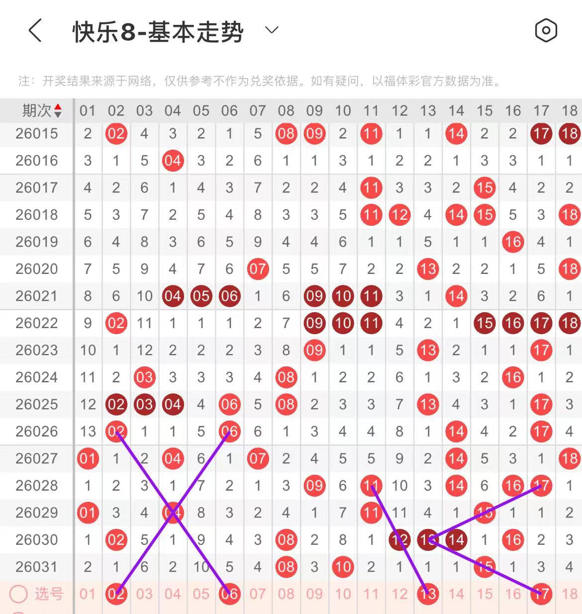 01-10区:本区间上期开出了两个号码,从号码走势图上看,该区现属于温号区,出号个数在两个号码左右,有出号走势的号码有02.06号,交叉斜连出号走势。