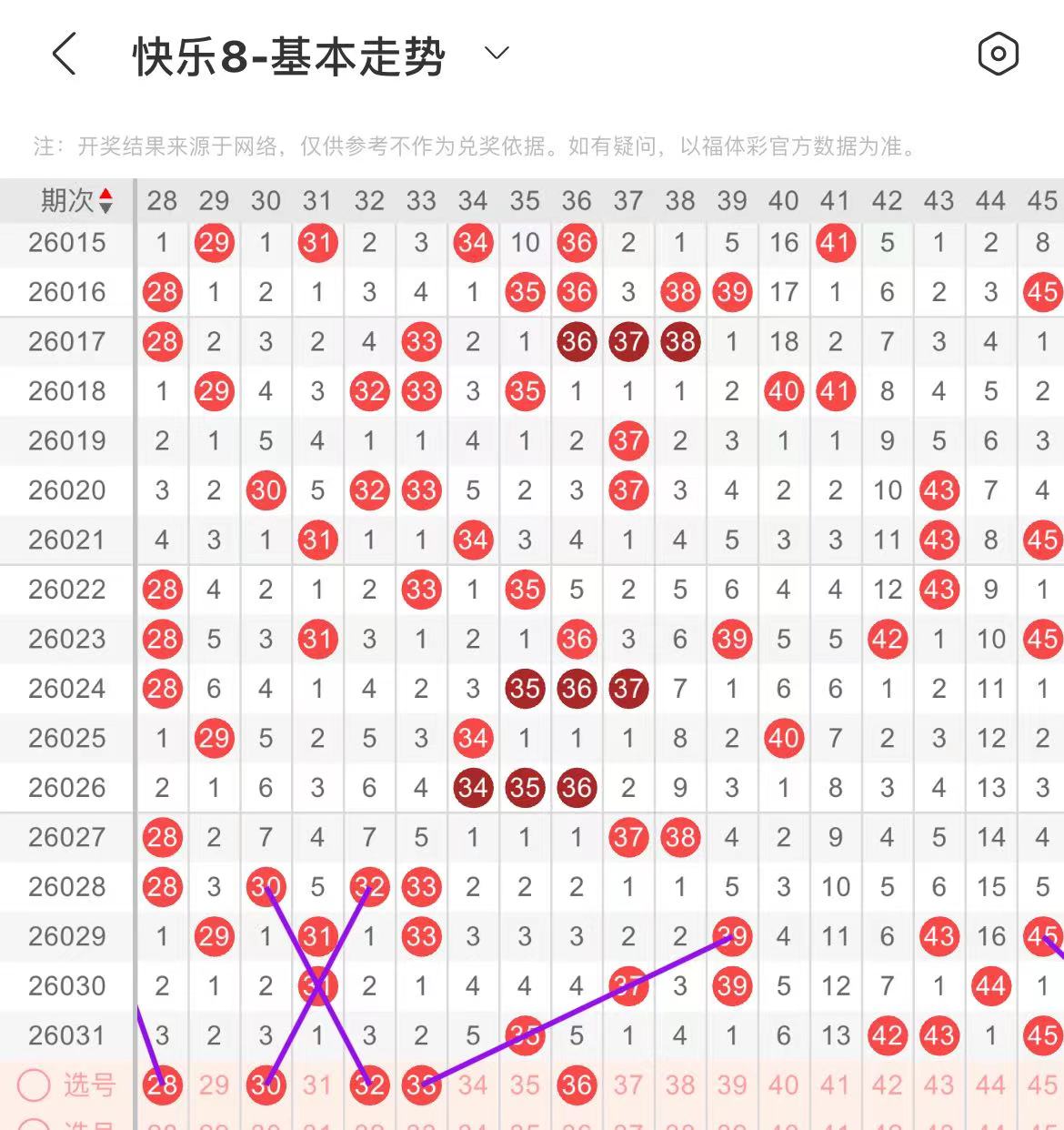 21-30区:本区间上期开出了三个号码,从号码走势图上看,该区号码走势回暖趋势明显,在选号上可着重考虑,出号个数在两个号码或者以上,有出号走势的号码有21号,斜连出号走势,28.30号,均有斜连出号走势,有同出的可能。