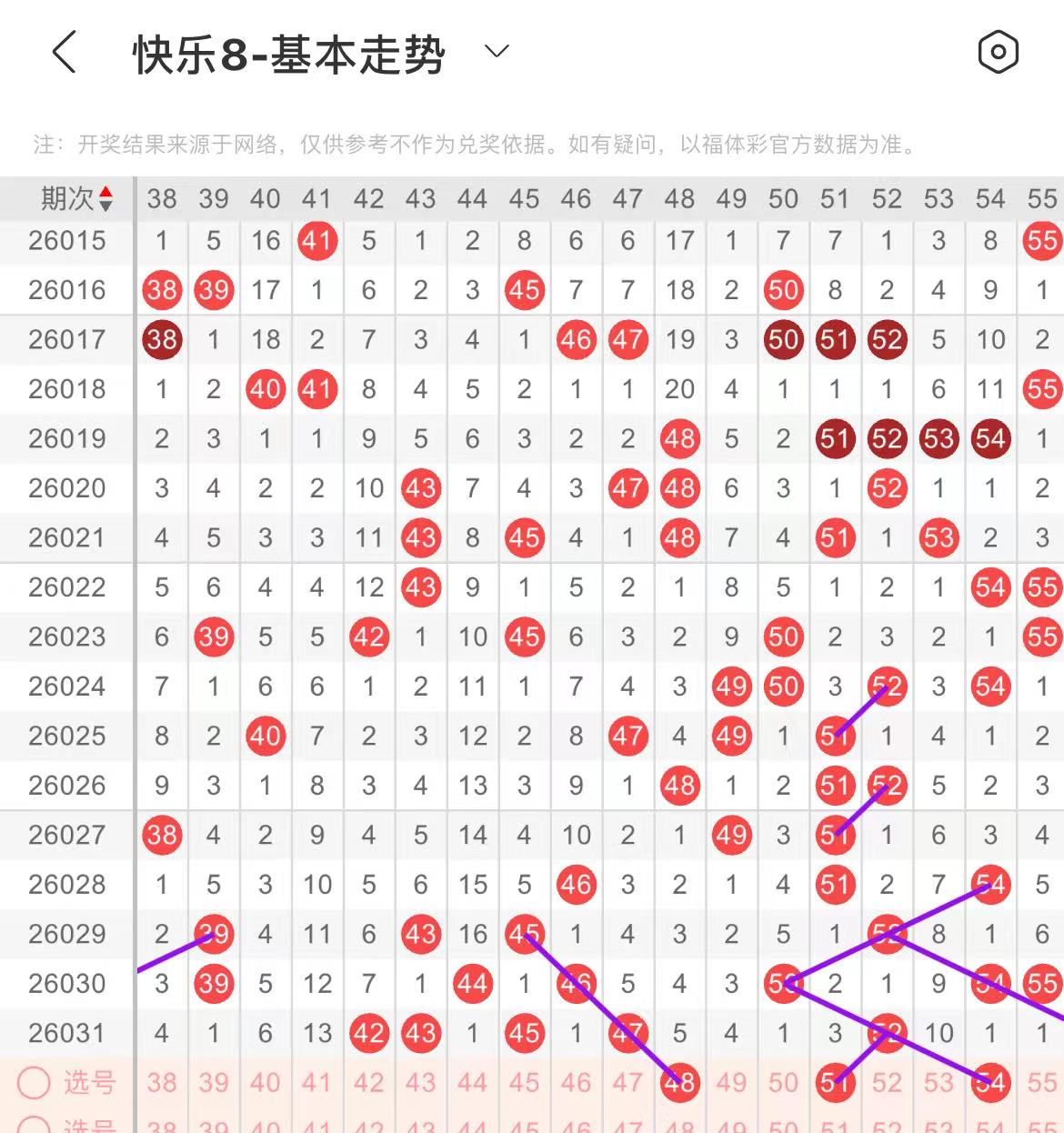51-60区:本区间上期开出了三个号码,从号码走势图上看,该区现属于温热区,出号个数应该还能保持在三个号码左右,本期有出号走势的号码有51号,做为边号开出,54号,回首掏斜连出号走势,58号,隔期四斜连出号走势。