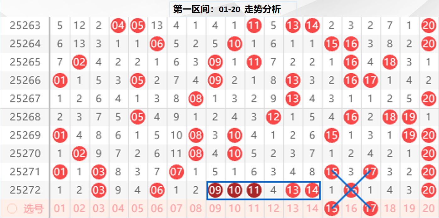 一区分析:【01-20】(走势图标注号码非小黄车大底,请谨慎参考,具体思路将在直播间分享讨论)