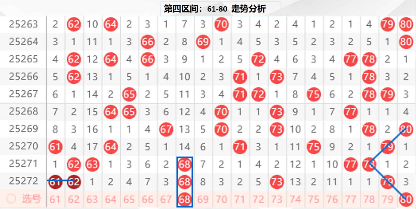 四区分析:【61-80】(走势图标注号码非小黄车大底,请谨慎参考,具体思路将在直播间分享讨论)