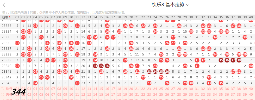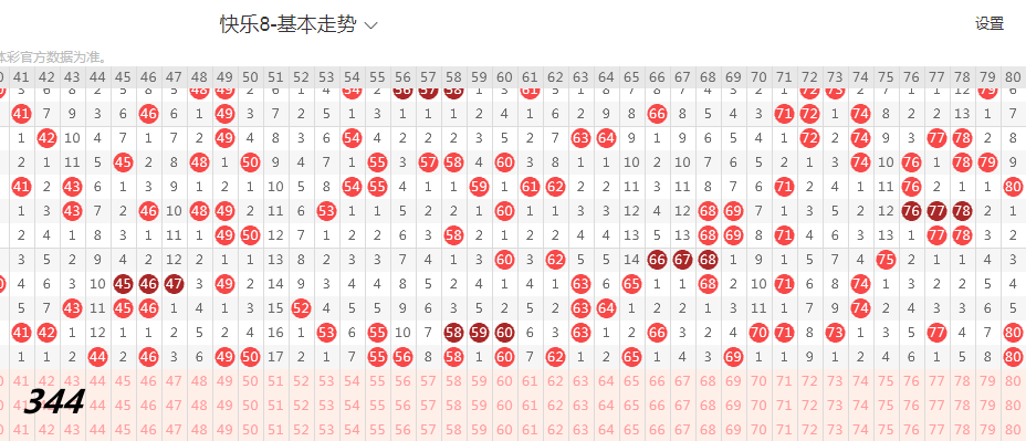 快乐8第343期开奖号码为:04、11、23、26、29、30、33、35、44、46、49、50、55、56、58、60、62、65、69、80。本期共开出20个号码,整体分布较为均衡,但局部区域存在明显聚集现象。其中小码区(1-40)开出8个号码,大码区(41-80)开出12个号码,大码略占优势。奇偶比为9:11,偶数稍多;尾数方面,以0、4、5、6、9结尾的号码出现频率较高。