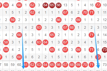 上图是福彩快乐8开奖号码走势分布图其中一部分,我在上面走势图中标注出来的数字一共有11个,这11个数字上期是一个都没出现,那么本期这个区域的数字开出数字的机会是有的,关注这个区域出号码2个或者3个,个人最看好数字61 68 70 68。