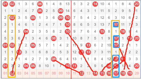 第一区间号码01-20,一区这一期算是回炉深造了,直接开出了八个号码,我们在直播的时候给出两种选择,要么放弃,要么选择作连号,而且重点提示两组连号04 05, 16 17。但是毕竟是预测,真的猜中了也不敢下手的。现在一区回暖,建议放在后半段研究,前面我们讲快乐八靠两边的号码尽量少做组合。