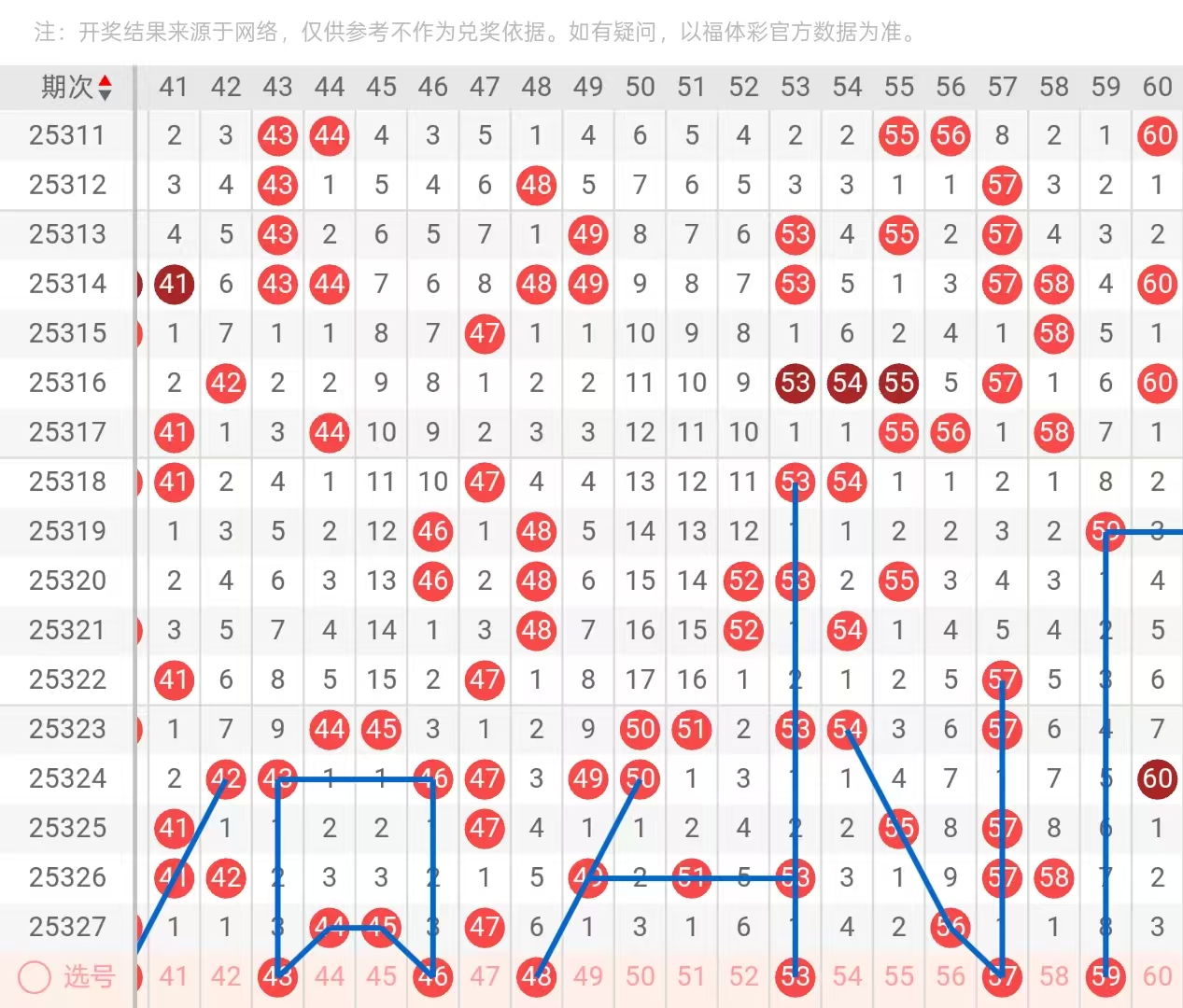 三区:三区间上期开出了四码,4字头头部位置开出对子空三回补的44-45,以及中部位置双重空一回补的47。5字头仅仅开出中部位置九期遗漏下落57-58对子的分边56,前后部分处于放空状态。本期三区间优先考虑斜连号码41-46两码做二选一,防守两期遗漏号码43的下落,45上期以孤码形态开出,本期可关注做重,尾部位置防守46-49两码五期遗漏的号码下落做二选一。5字头头部位置优先考虑四期遗漏回补的51与上期以孤码形态开出的53,可关注分边号码52-54,5字头与6字头开出同尾可考虑一码的做重,那么本期53-63可考虑一码的下落。尾部位置防守十二期期遗漏下落的58,其次59与四区间的61做二选一。