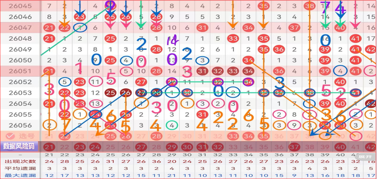 区间推荐主做号码22 25 26 28 33 34 35 防守号码36 38 39;