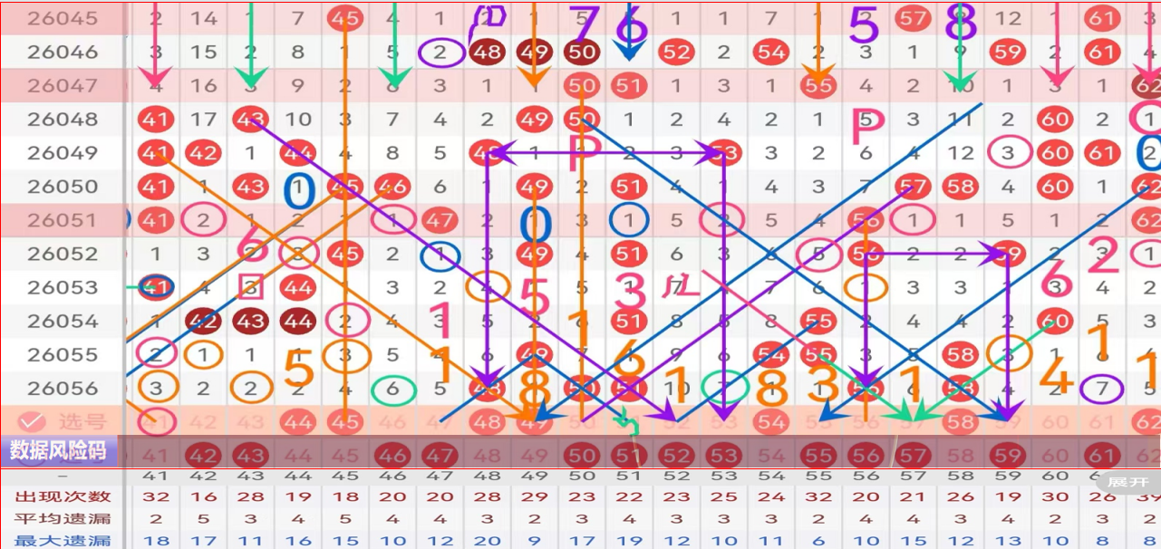 三区间上期出了5个号 码,均值开出;龙头41高数据,第四次走遗漏3,这个号码属于热态码,建议主防吧;42 43不宜做号;4字头中部的44 45本期可连号防守,不宜胆码,不错的拖码;46 47风险码;梅花49,第九次走遗漏1,带上梅花边码48做连号主防,二择一主做推荐49;50-53风险码;54是5字头中部的高遗漏属性码,可主防;55 56 57建议本期观察;58上期孤码走重,本期是不错的三重做号号码球,58 67同形态,二择一推荐58主做;尾部59 60,59被压走势,那么60做防;