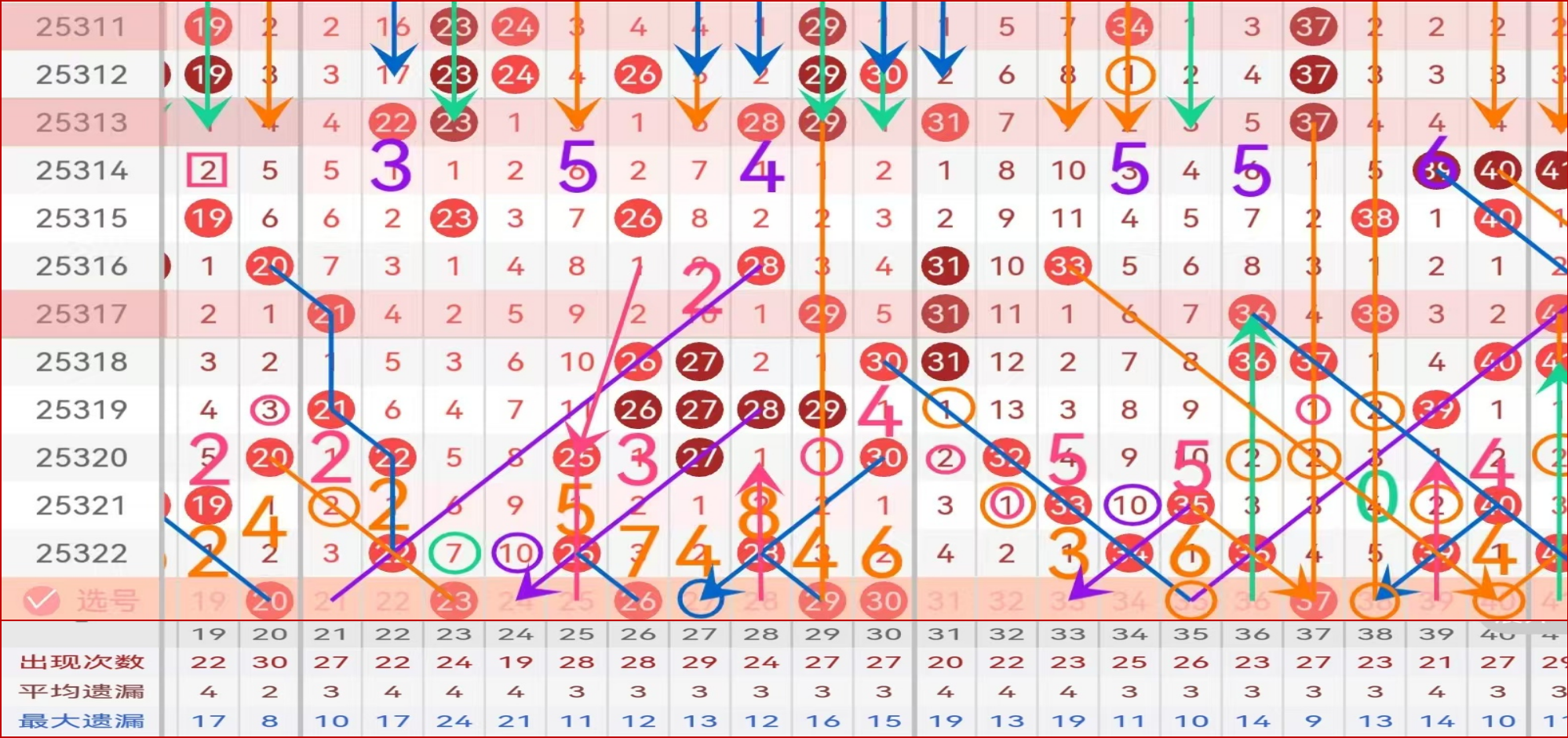 二区间上期开出了6个号码球,热态开出;端部21 22 23三择一推荐23分边码空位斜连回补码,小数据码,这个孤码分边23防守为主;孤码25本期走重可小防,主看分边26,第8次走遗漏3点位 的高遗漏属性码,可主防;27高数据,本期的26 27双码夹心可根据组合拿号;孤码28分边29,小数据的遗漏对称码,可带上高遗漏属性码30连号主防,29 30可连号主防,介于28 29是高频组合,所以这里的28 29 30是不错的拖码;区间段三个孤码22 25 28三码,如果按常规看一码做重,还是考虑大遗漏回补码25吧;3字头本期根据形态数据,预判本期不会有太多号码落球,主推一码37,做防35 40;33 38可根据组合需要拿号,有概率;