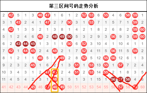 第三区间号码41-60,第三区间昨天果然是开出了48,而最看好的51 53 55真的是没有出现。所以你知道了,没有开奖之前你永远是最厉害的,开奖之后永远都是最先唉声叹气的。这个时候第三区间理应到了一个转型期,对于未知的走势,我们没有必要区纠结,毕竟快乐8开奖可不止一个区间。好在个别的单号做起来还是没有问题的,可以适当在这里做一下单号防守。