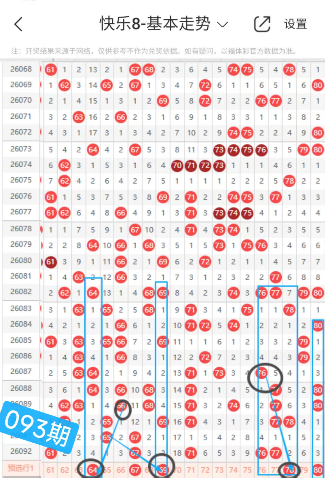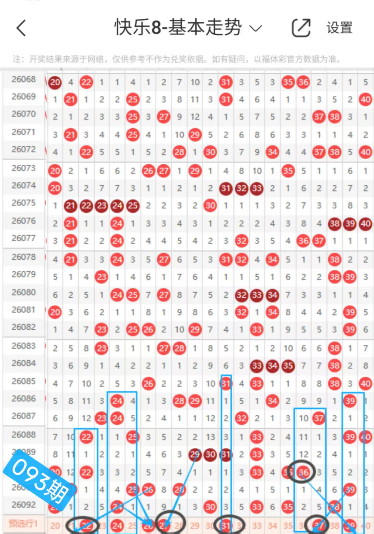 快乐八093期走势分析(本期机会不错+继续冲击全拖大奖)