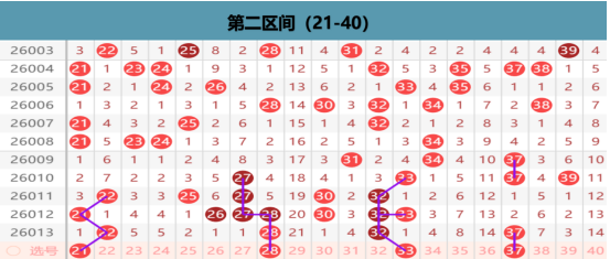 本区上期开出4码的区间布局,那么在本期我们还是把区间的形态分类,28 32的区间的重码同形态,22 32的区间的同尾出号,在这个位置上我们是要考虑做容错的可能性的,在空位上我们关注的还是小周期的出号点位,在25 26 30 34 39的位置上我们考虑一码的出号点位,在温冷号码的位置上我们是要考虑出号的可能性,在25 29 36 38 40的位置上我们做择一的出号的选择,优先考虑的就是36 38 40的出号点位,这个位置上我们做重点的布局点位,那么其他位置的出号就不是我们考虑的重点位置了。