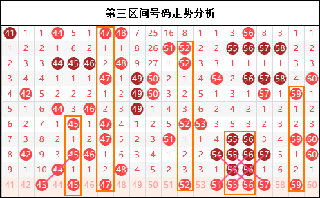 第三区间思路:三区是越来越复杂啊,直接将连号重码走出了三重的节奏,那三区的主线是越来越鲜明。尤其是区间分布走势中,前后各开出两码的节奏,简直是太给力了,直接在前期的多码走势中做了均匀分布。本期三区的思路我想大家要谨慎了,毕竟再一次发力的趋势很明显。