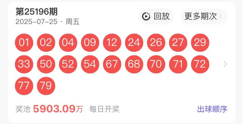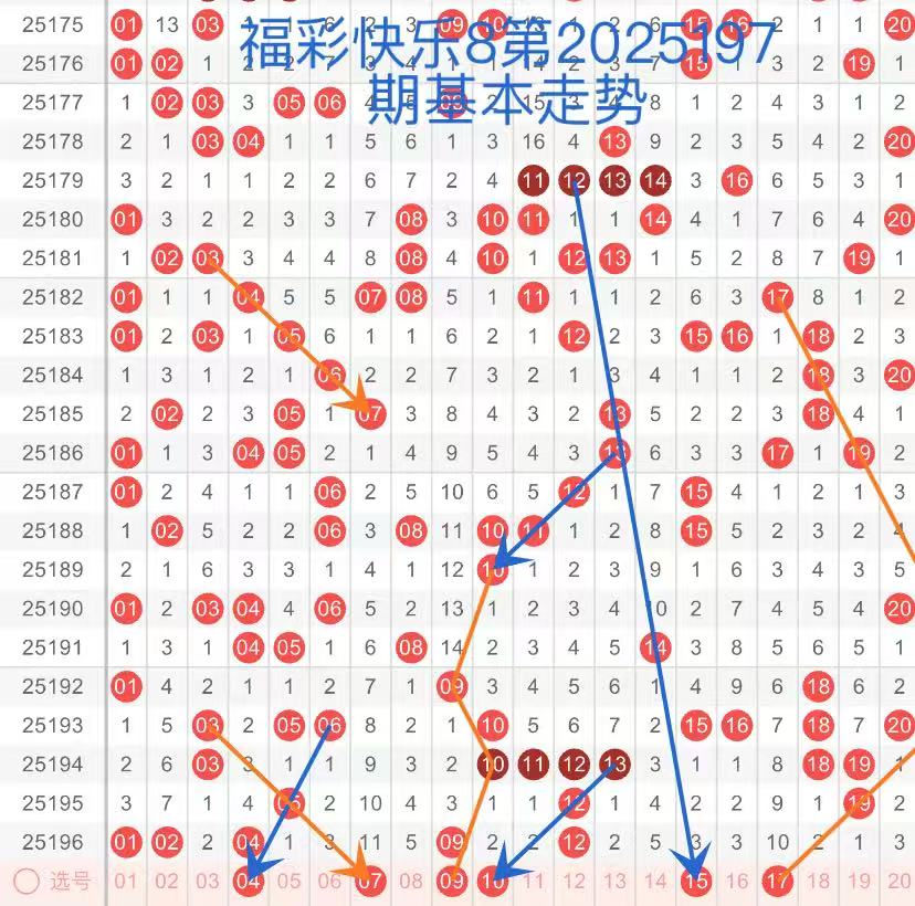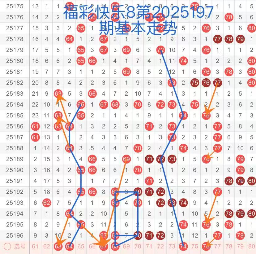 下面是我对2025197期福彩快乐8的分析和预判,希望通过我的分析能让大家今晚大满贯!福彩快乐8上期开奖号码如下图