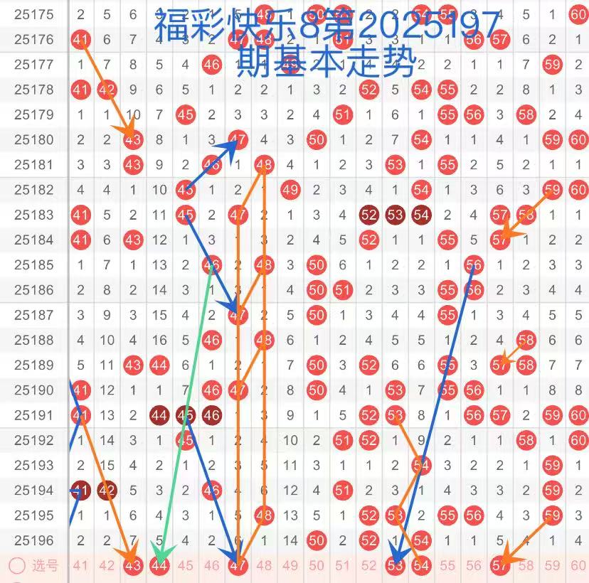 25197期福彩快乐8,走势综合分析(本期一胆参考43)