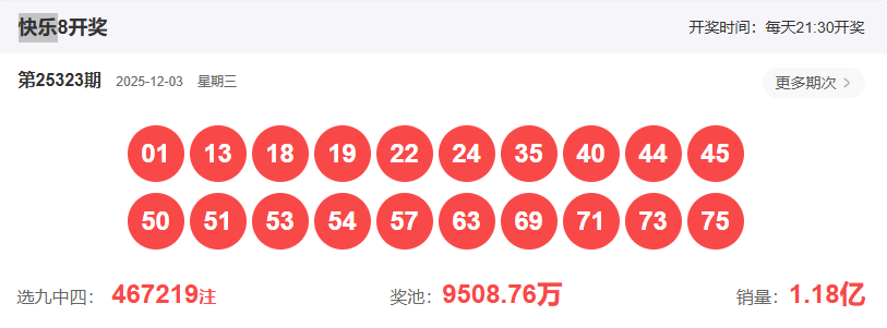 首先我们看下上期数据,和值为877。 奇偶比例为:13:7。 出了四组双连号,分别是18+19,44+45,50+51,53+54。 直连重号出了5个,分别是01,22,57,71,73,其中71为三重号,其余均为两连重号。未出现断层区域。我们把 01-40划分为前区,41-80划分为后区,则小号偏多。值得关注的是间隔15期未出的45冷号,还有间隔17期未出的50同时在上期开出,其余均为热号和温热号。