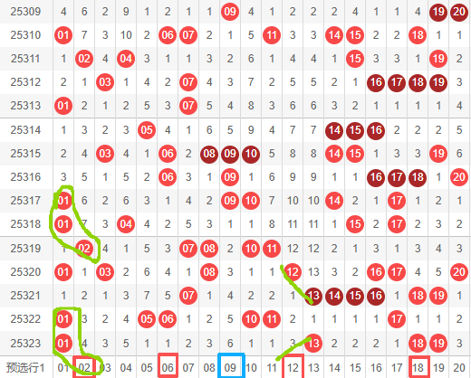 18:18这个号码前几期本人一直在推,这两期没有推,出了,本期继续推吧,热号趋势明显,鉴于最近重号很多,18可作为重号重点。