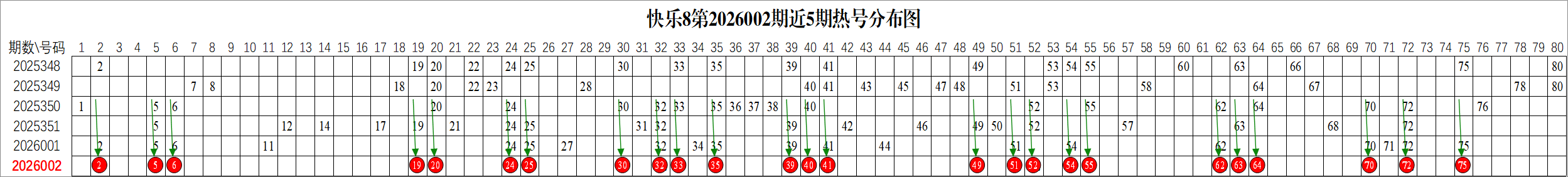 快乐8第2026002期多条件统计分析组号(上期对1组选9中5)