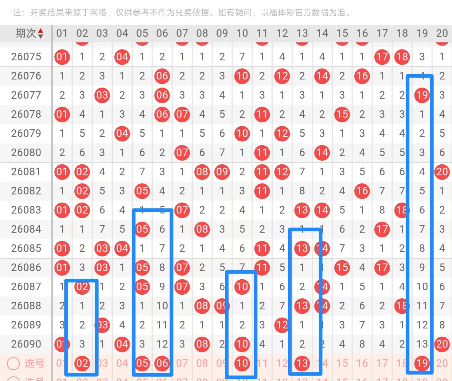 一区1—20:本期在0字头做号的时候,大家首先得考虑3期遗漏的下号,0字头的点位上面可以,以02 05为主,然后05又是干净的三斜连,这一类的情况开出之后,我们尽可能以对子去带下来可能会更好一点,值得大家去关注的是10 20为同尾的区间号码,在这里面你去做号的时候是不能考虑太多井喷的,如果说实在想去大面积的补号,尽量把它控制在15以前,那么本期我们在正常的号码当中可以考虑重码的10,然后13 15去二选一。