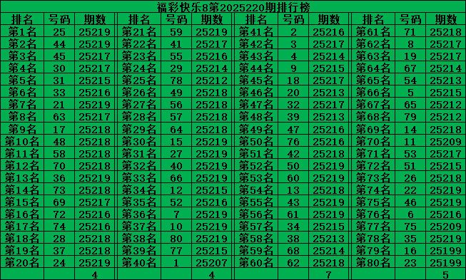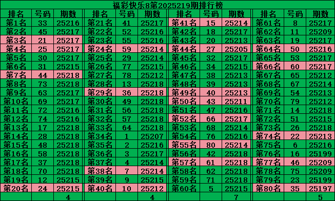 最后再把号码分为五区:一区01-16号、二区17-32号、三区33-48号、四区49-64号、五区65-80号,理论上每个区每期应该开出4个号码,2025219期五区比例:3:5:6:4:2
