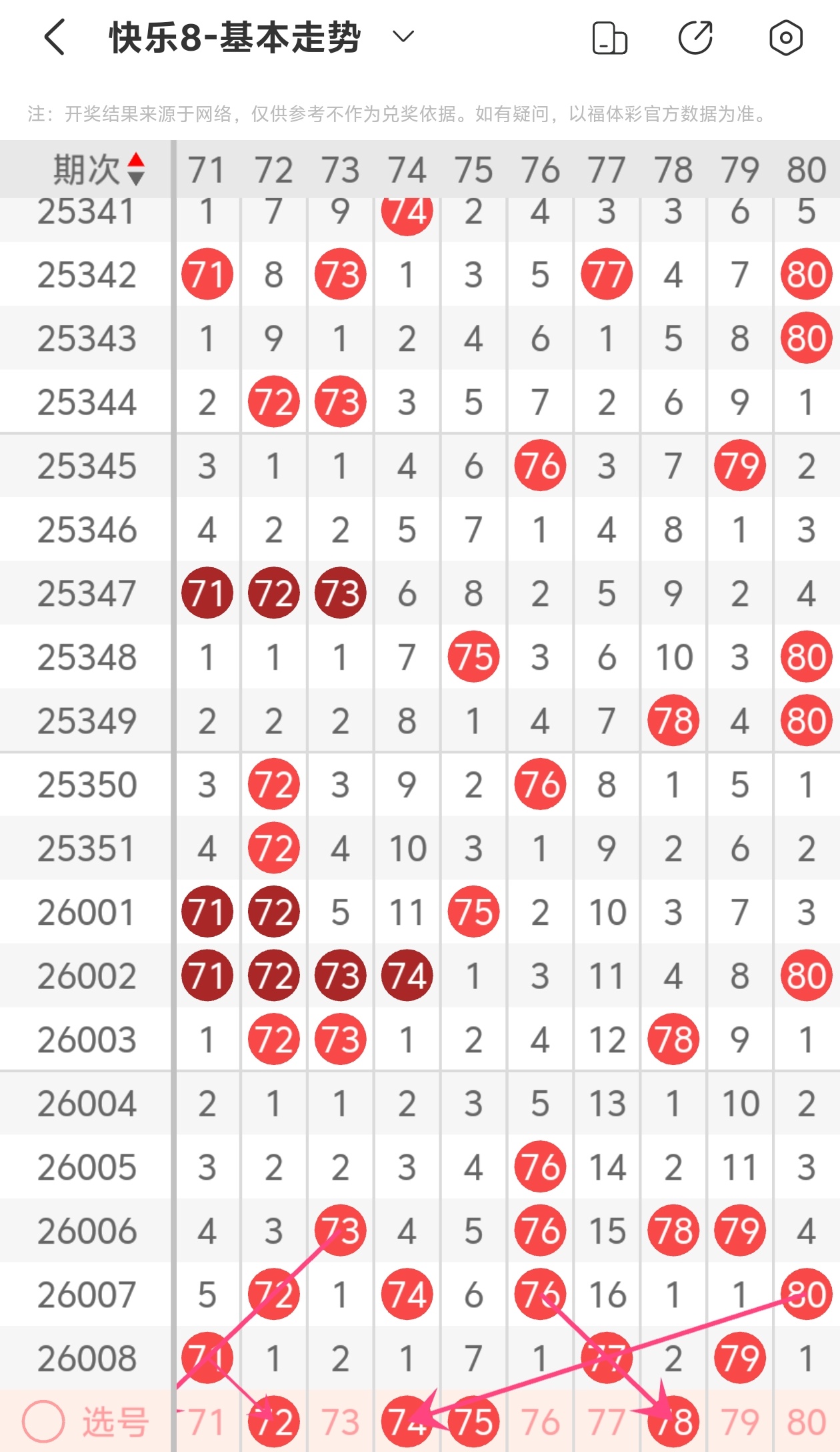 大伙都知道,玩彩票得理性,谁也不能打包票百分百中奖,别人的看法能参考,自己的判断也不能丢。但我这次对2026009期福彩快乐8的分析,那可是下足了功夫!