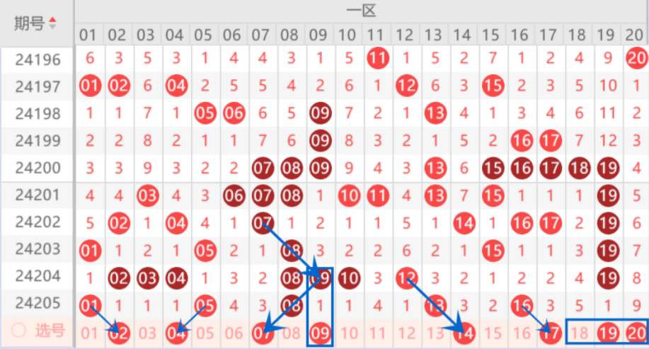 下图为01-20号数字区间走势分析图: