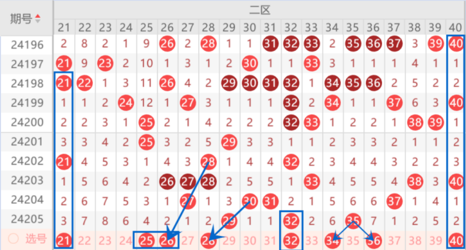 下图为21-40号数字区间走势分析图: