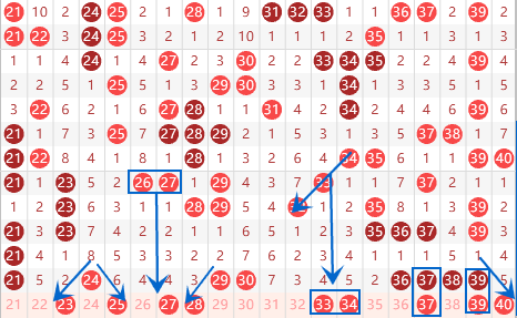 下图为21-40号数字区间走势分析图: