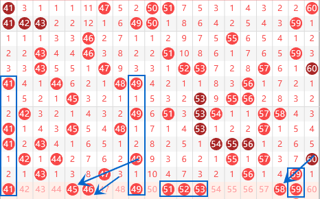 下图为41-60号数字区间走势分析图: