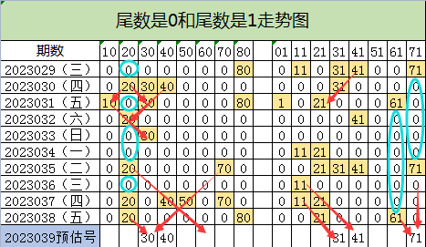 在036期遗漏尾数0没有号码,在037期遗漏尾数3没有号码,
