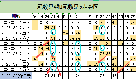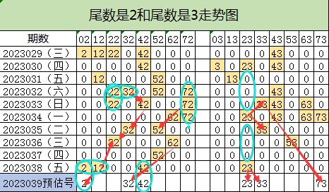 走势中间034期的号码23分别两边斜开33二连号近10期之前号码23是非常喜欢