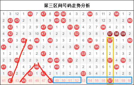 三区是唯一一个在竞争如此激烈下还能完整保留上期四个开奖个数的区间,由此可见区间的优势还是存在的,四个号码走出了三个邻号的走势,也可以间接表面走势在本区的的一个重要性。昨天的5字头几乎又是一个全断,好在跟大家提示了53 55两个号码。预计全军覆没的还是比较多的。今天三区无非就两个走势,一个是顺势而为,一个是查漏补缺。当然还有一点自己的心思在里面,那今晚我们看看三区意欲何为。